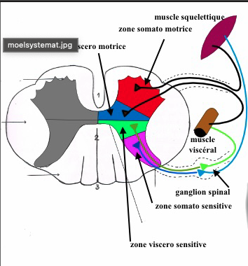 la substance blanche est périphérique.la substance grise est centrale. On distingue pour une hémi moelle: